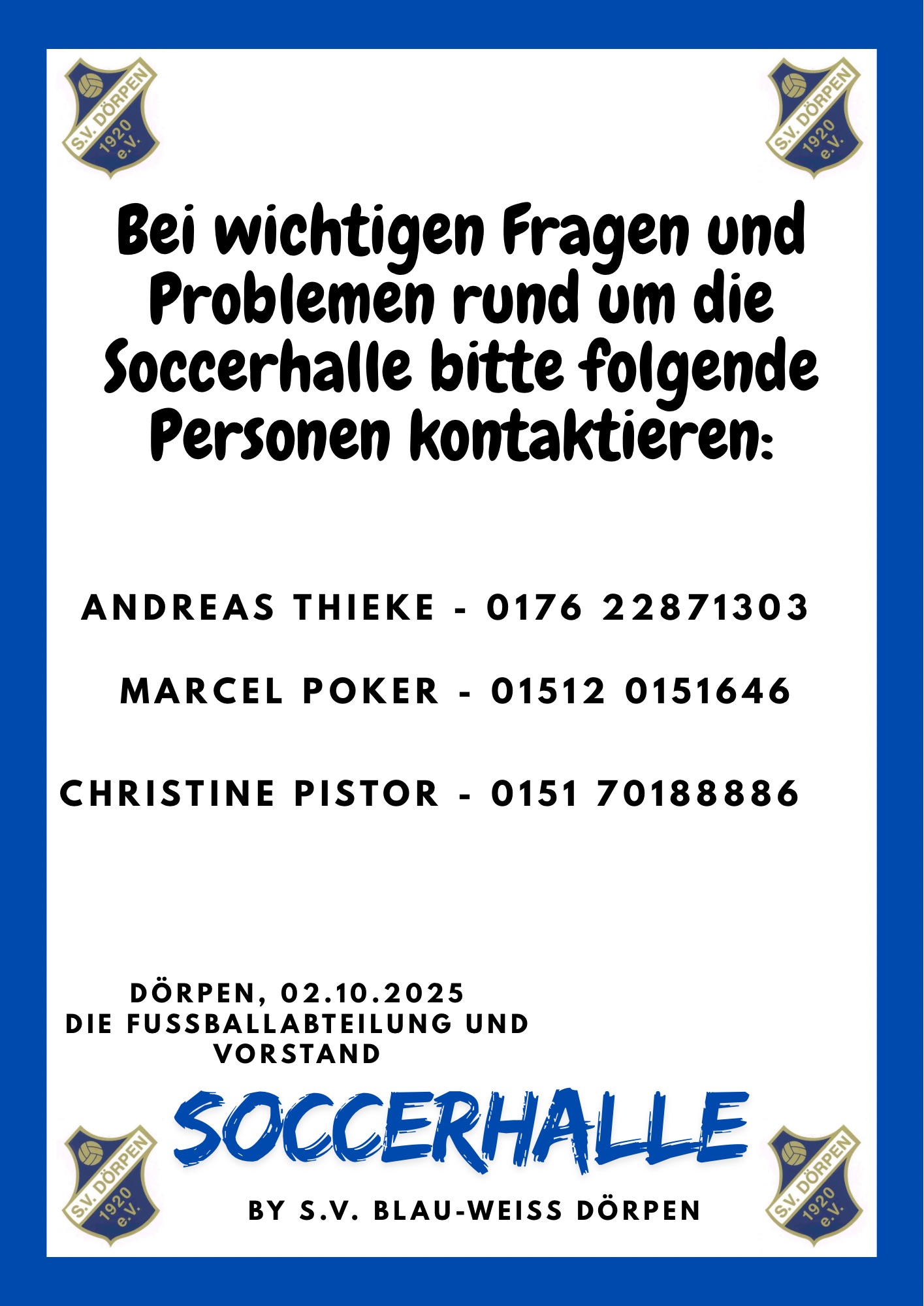 Bei Fragen können Sie eine Mail an soccerhalle@blau-weiss-doerpen.de senden.