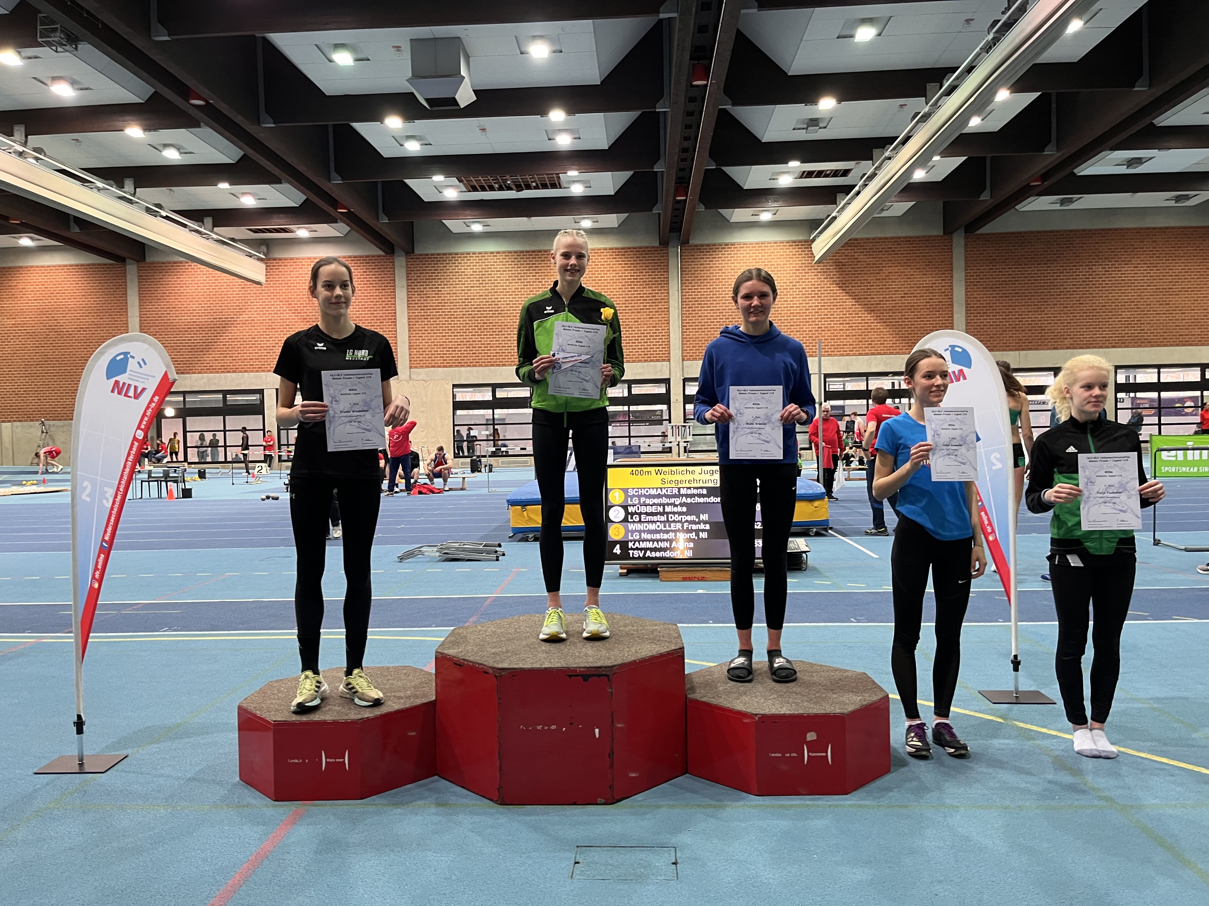 Mieke Wübben wurde in ihrem ersten Jahr in der Altersklasse U18 Viezelandesmeisterin über die 400m mit einer Zeit von 60,93s.