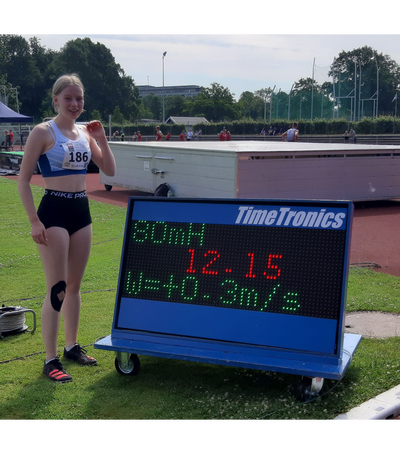 Dabei unterbot sie abermals ihre Zeit auf nun 12.13s und knackte zudem den mitlerweile 25 Jahre alten Kreisrekord von Vanessa Gruber, die enfalls für LG Emstal startete und 12,19s lief.