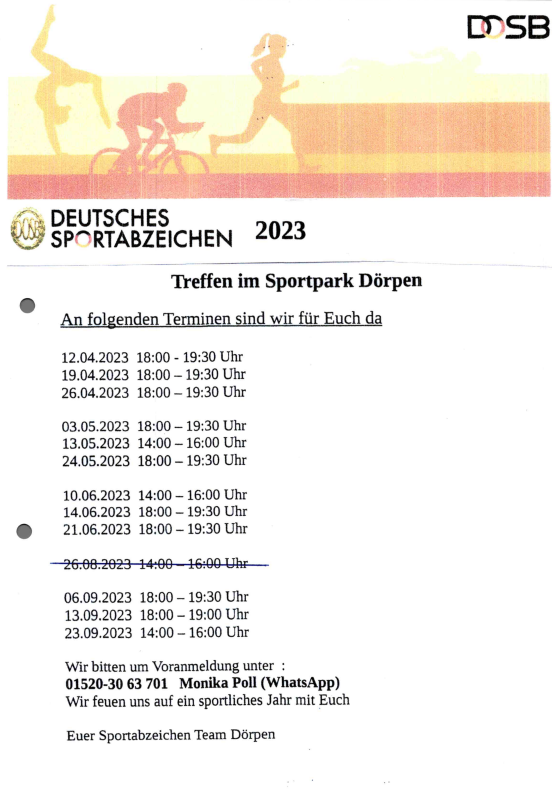 Hier finden Sie die Termine für das Sportabzeichen in diesem Jahr.